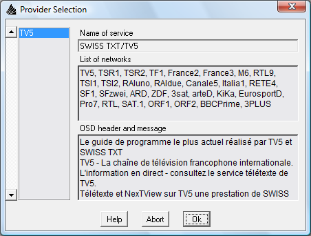 Pendant la recherche, tous les canaux TV sont examinés afin de trouver les transmissions nexTView, ensuite une liste des fournisseurs est établie en fonction du résultat.