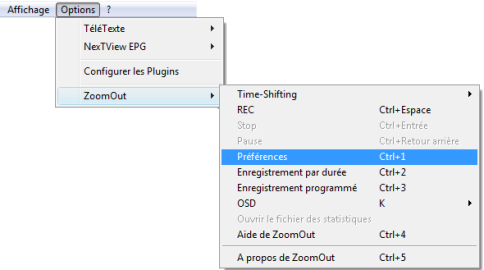 Pour configurer le plug-in ZoomOut afin qu'il nomme automatiquement le fichier à enregistrer en s'appuyant sur nxtvepg, sélectionnez "ZoomOut", "Préférences" du menu "Options".
