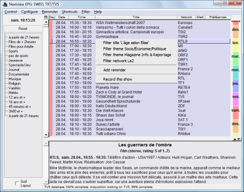 Il est important de noter que les personnes ayant installé nxtvepg correctement, c'est-à-dire que les noms des chaînes soient identiques sous K!TV et nxtvepg, et que ce dernier soit activé, peuvent depuis nxtvepg rajouter l'émission à programmer. Il suffit pour cela de faire un clic droit sur le programme désiré et de choisir "Record this show".
