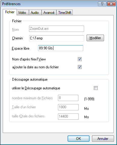 Dans la boîte de dialogue, cochez la case "Nom d'après NexTView". Vous pouvez également cocher la case "Ajouter la date au nom du fichier" afin d'ajouter la date et l'heure de l'enregistrement au début du nom du fichier.